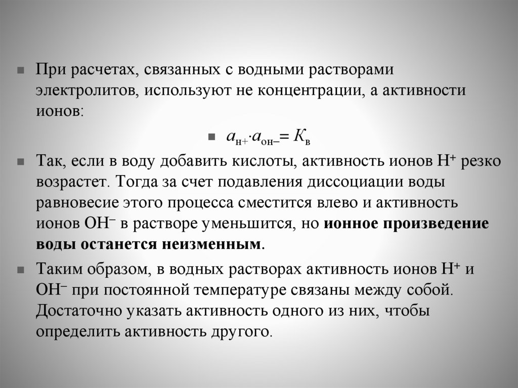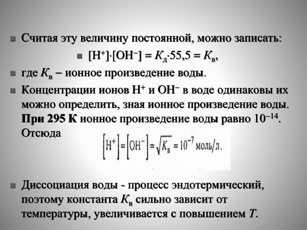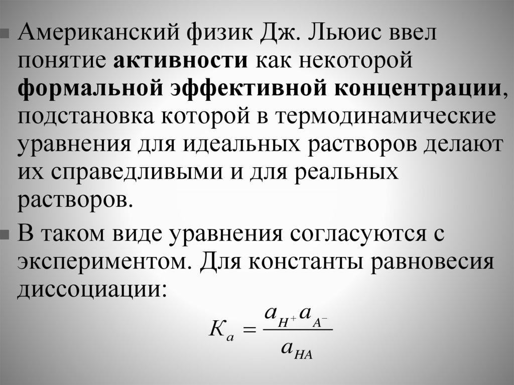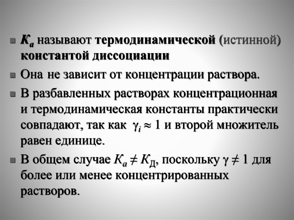 разбавления В.Оствальда. Смещение равновесия диссоциации