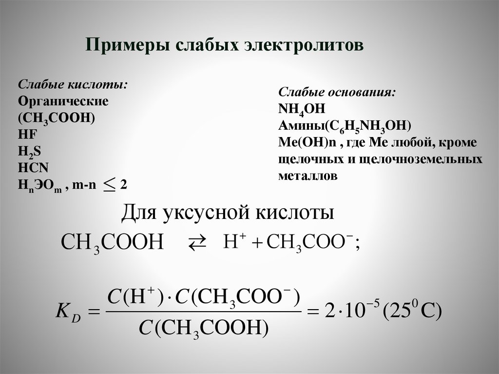 3. Сильные и слабые электролиты. Равновесие диссоциации слабых