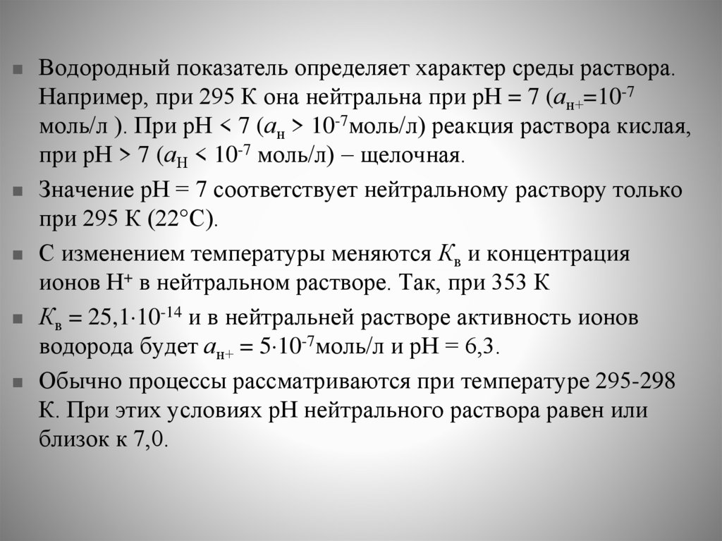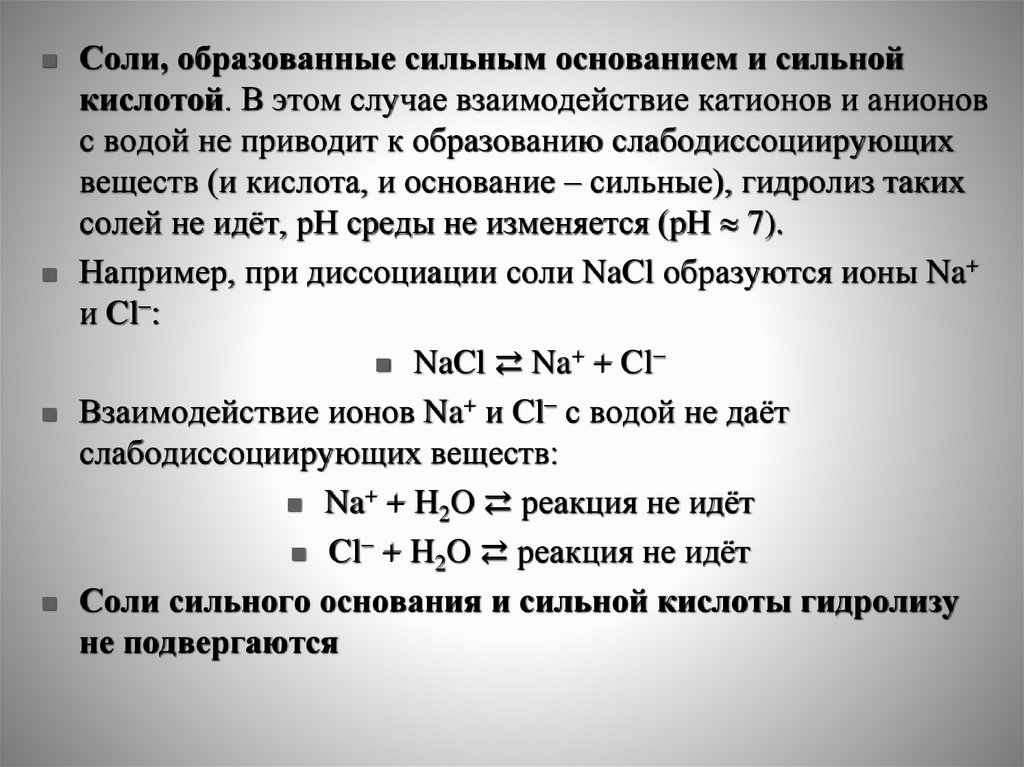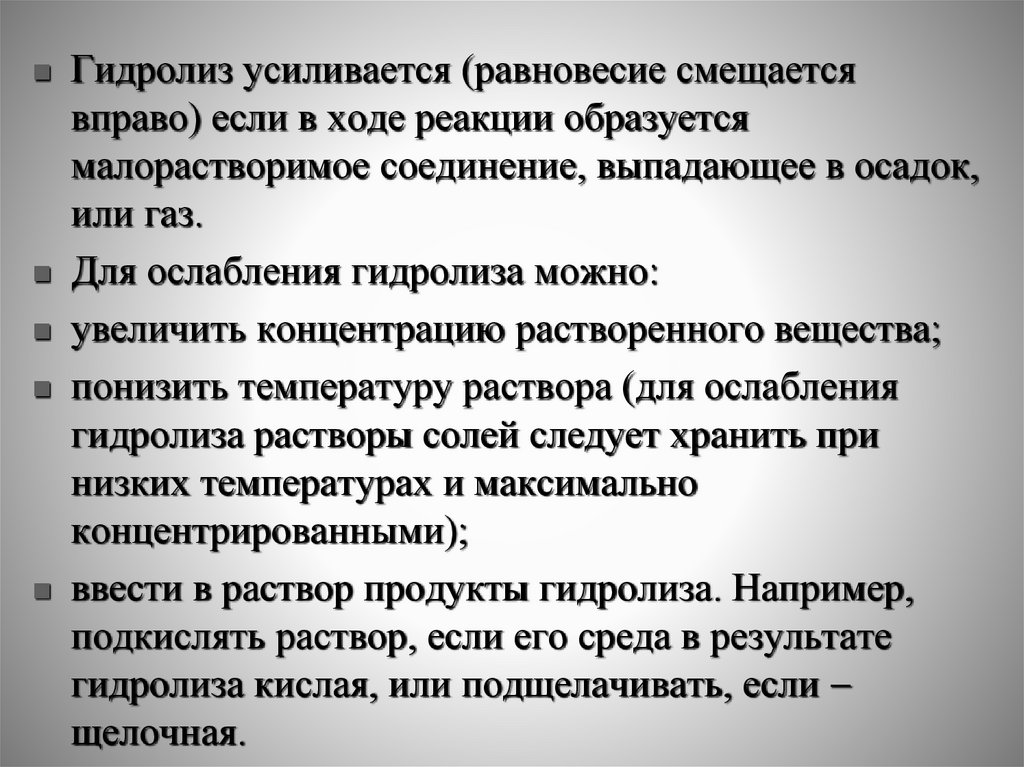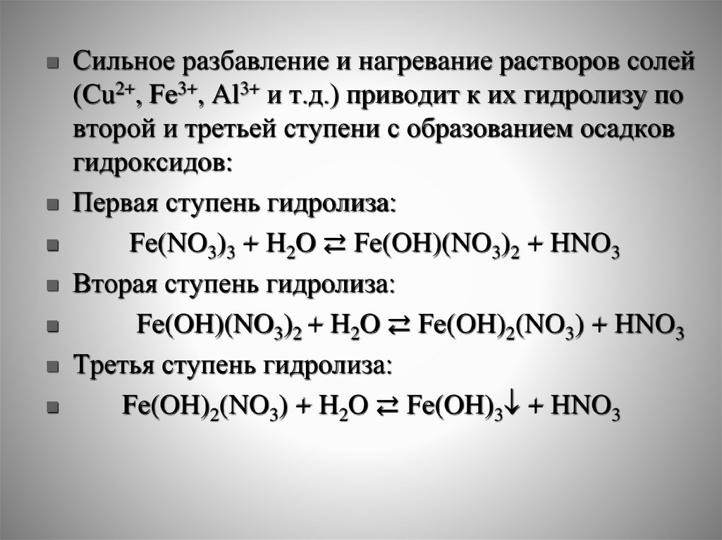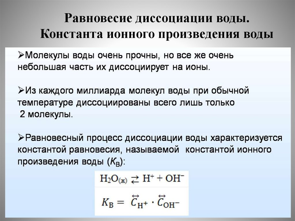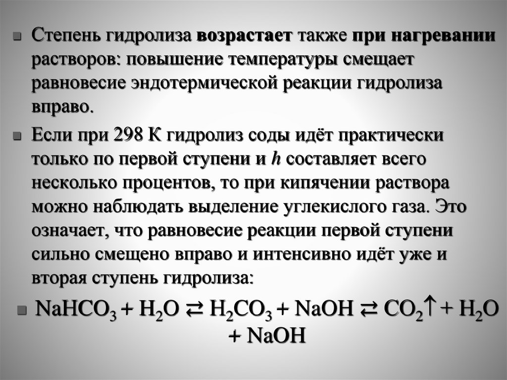 Гидролиз. Смещение равновесия диссоциации воды в растворах