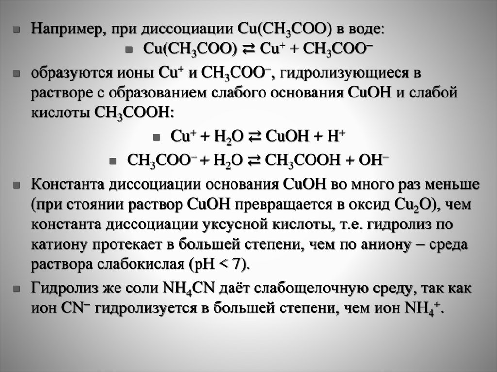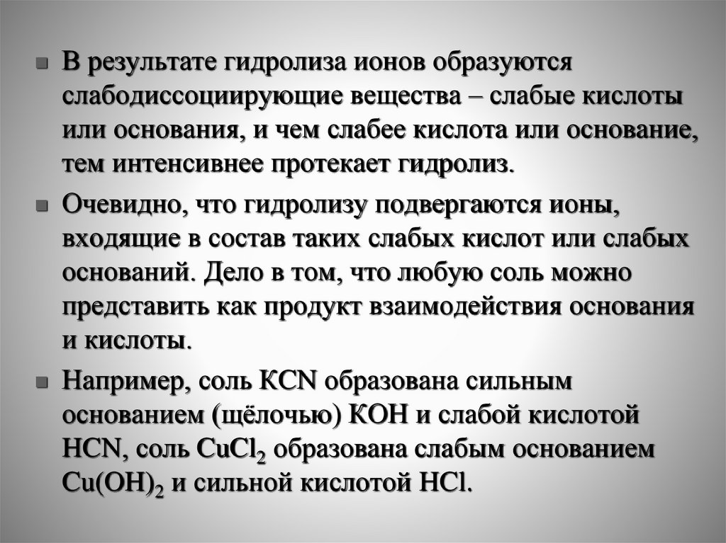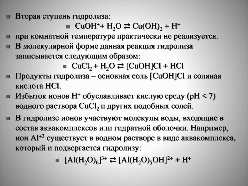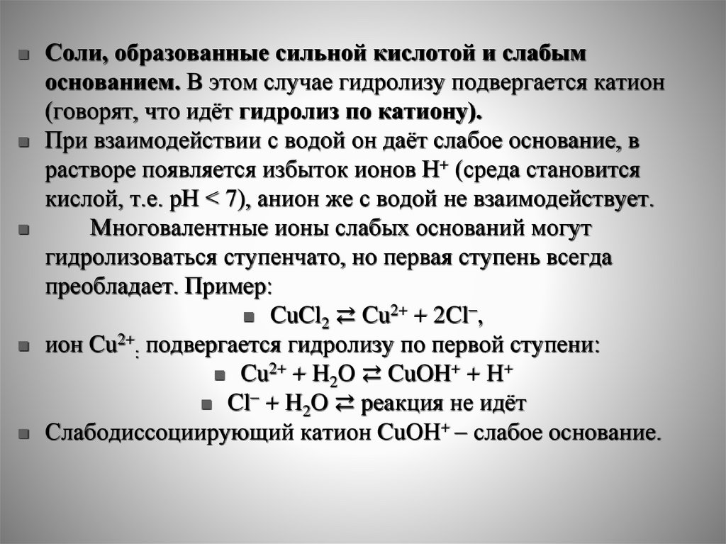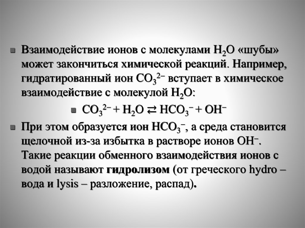 Гидролиз. Гидролиз по катиону и аниону (изменение рН