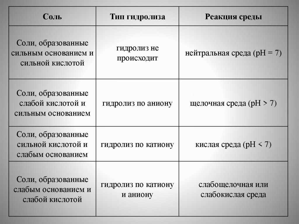 электролитов. Гидролиз по катиону и аниону: изменение характера среды.