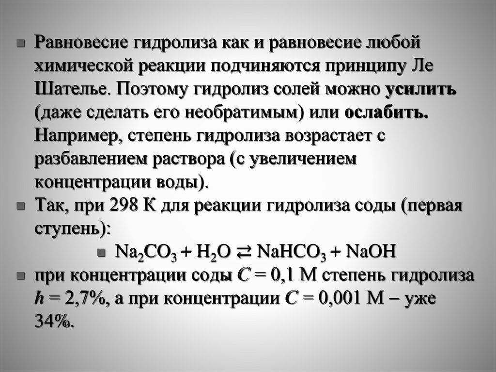 Константа и степень гидролиза. Принцип Ле Шателье.