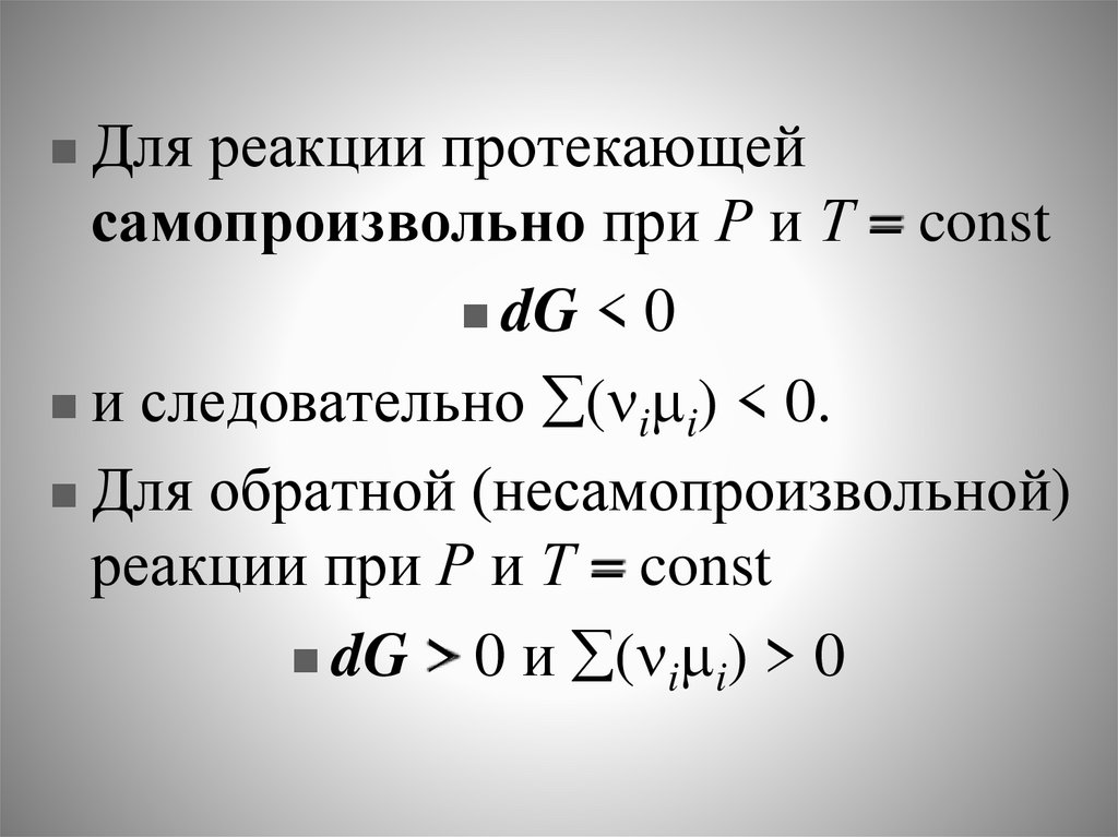 Если сумма химических потенциаловисходных веществ больше, чем сумма