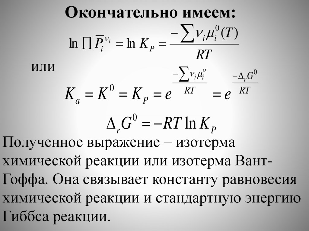 химической реакции или изотерма ВантГоффа. Она связывает константу равновесия