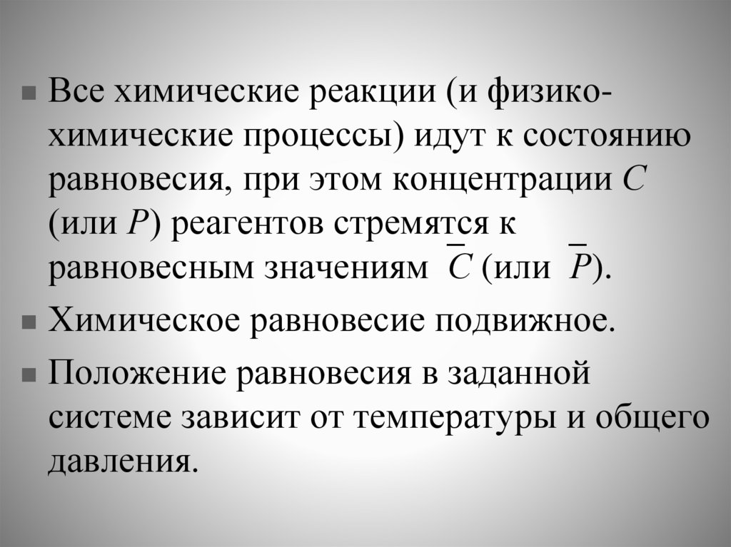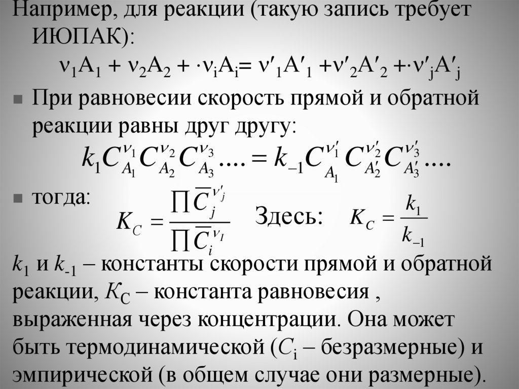 равновесия. Расчет химического равновесия: равновесные концентрации,