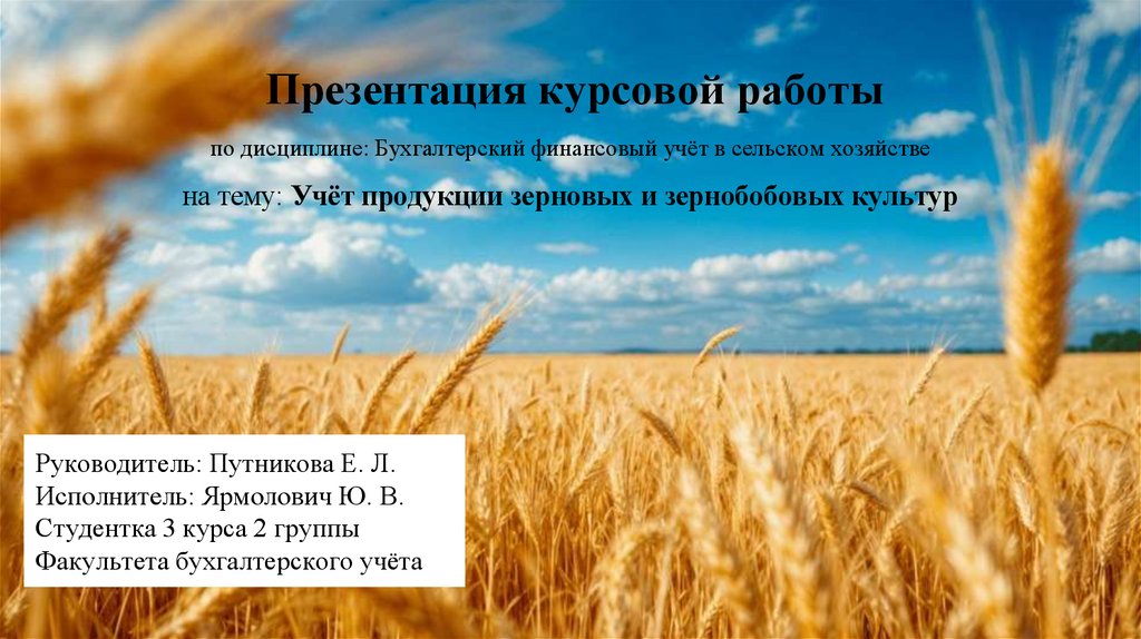 Презентация курсовой работыпо дисциплине: Бухгалтерский финансовый учёт в сельском хозяйстве