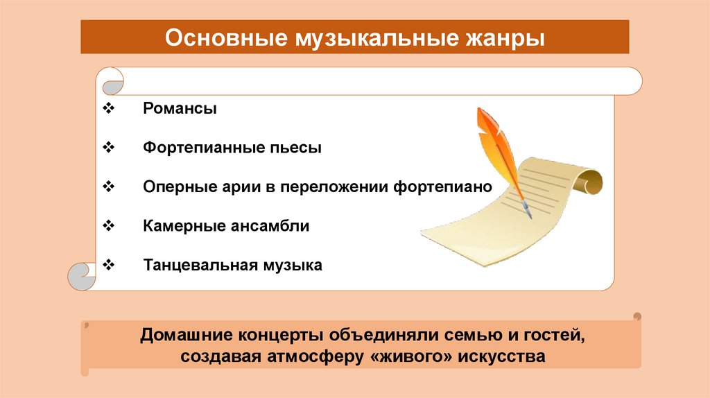 Ответ. Домашние концерты объединяли семью и гостей, создавая