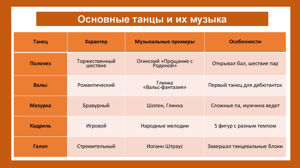 Основные танцы и их музыкаТанец