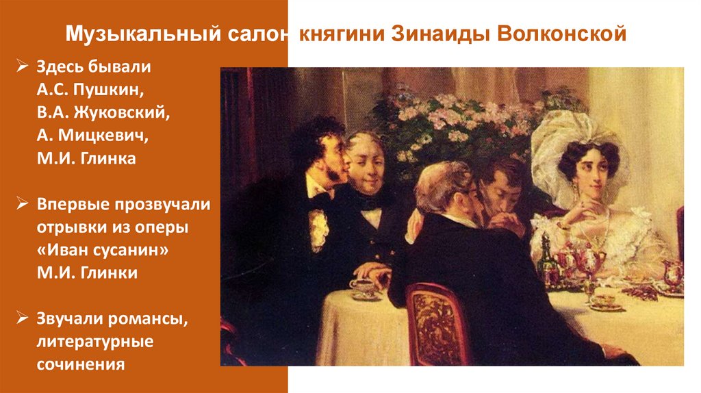 Музыкальный салон княгини Зинаиды ВолконскойЗдесь бывали
