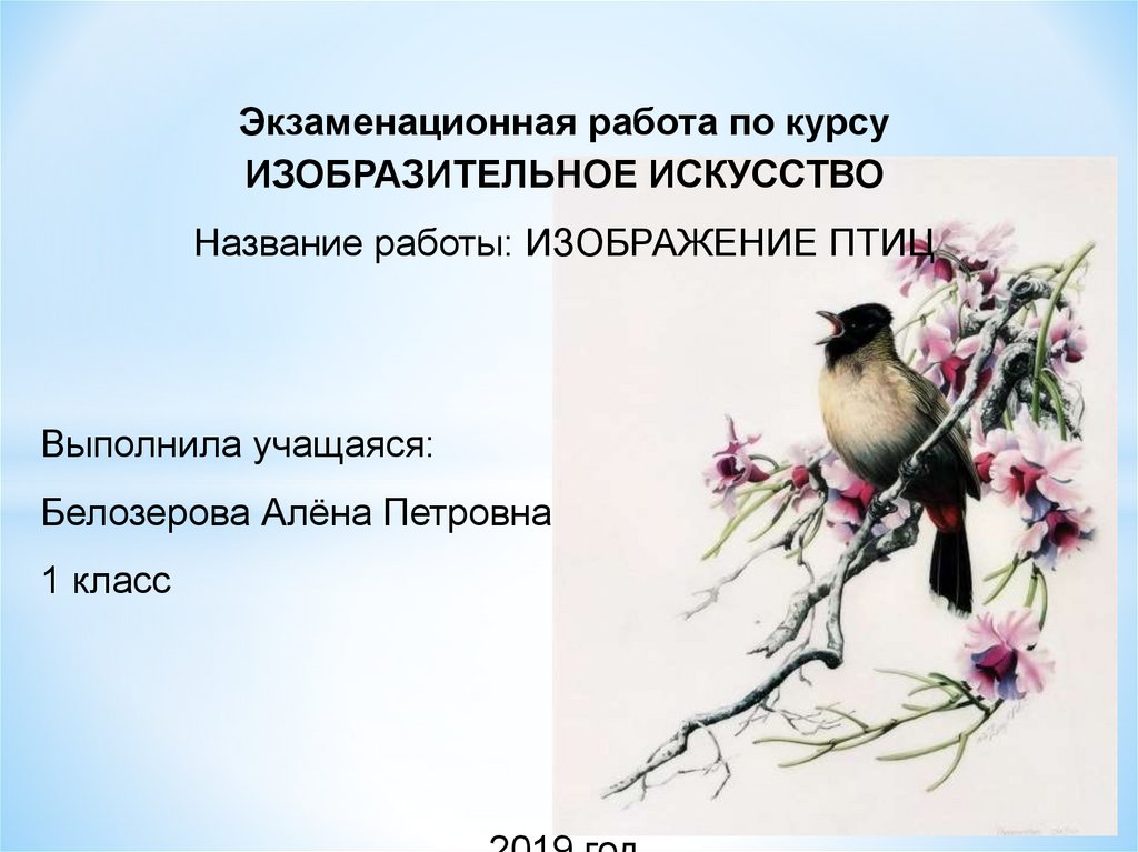 Название работы: ИЗОБРАЖЕНИЕ ПТИЦ