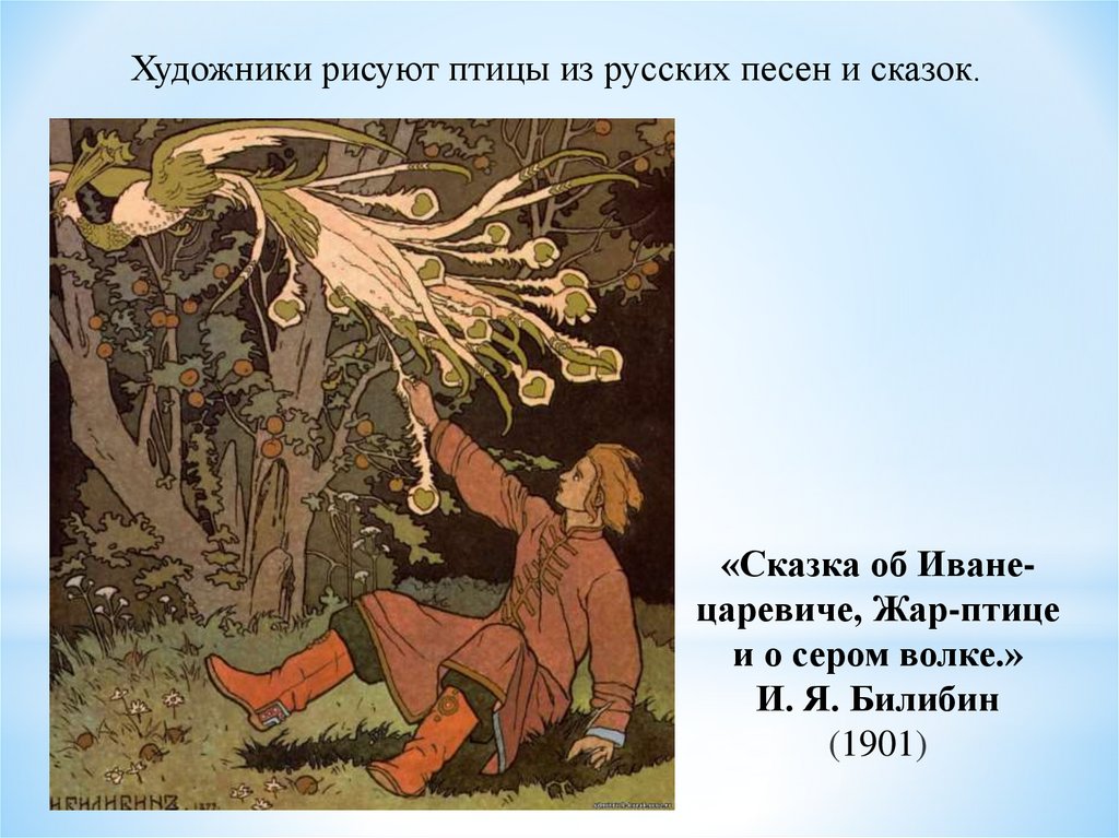 Художники рисуют птицы из русских песен и сказок.«Сказка об Иванецаревиче, Жар-птице