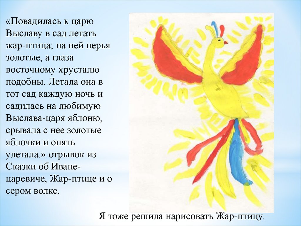 Я тоже решила нарисовать Жар-птицу.