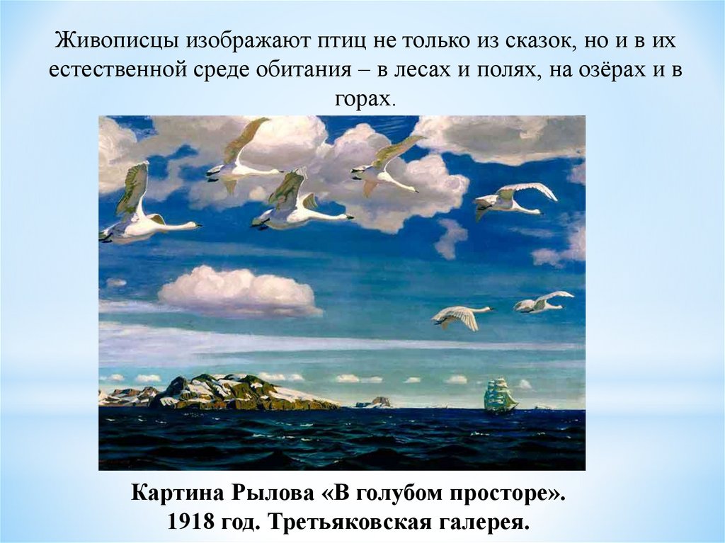 Живописцы изображают птиц не только из сказок, но и в ихестественной среде обитания – в лесах и полях, на озёрах и в