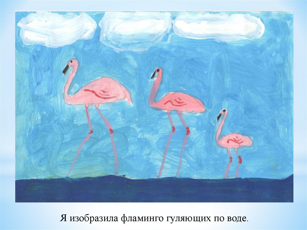 Я изобразила фламинго гуляющих по воде.8.