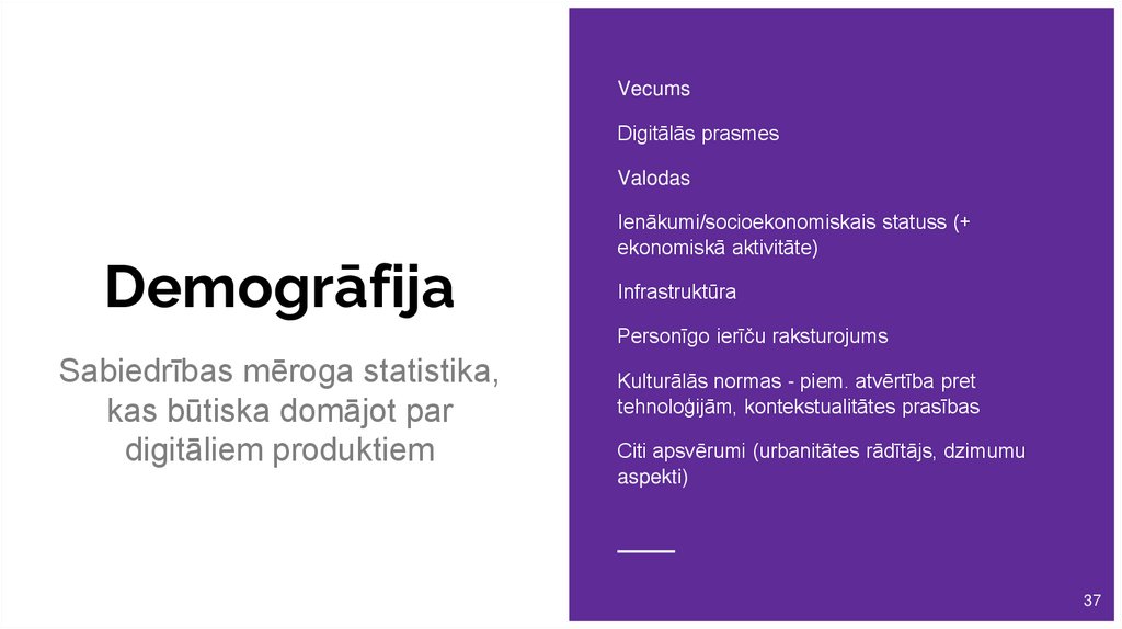 lietotājus raksturo? Kā šie aspekti ietekmē produkta