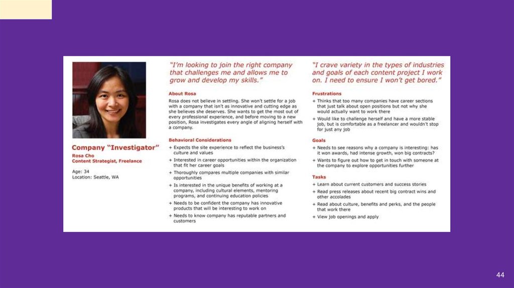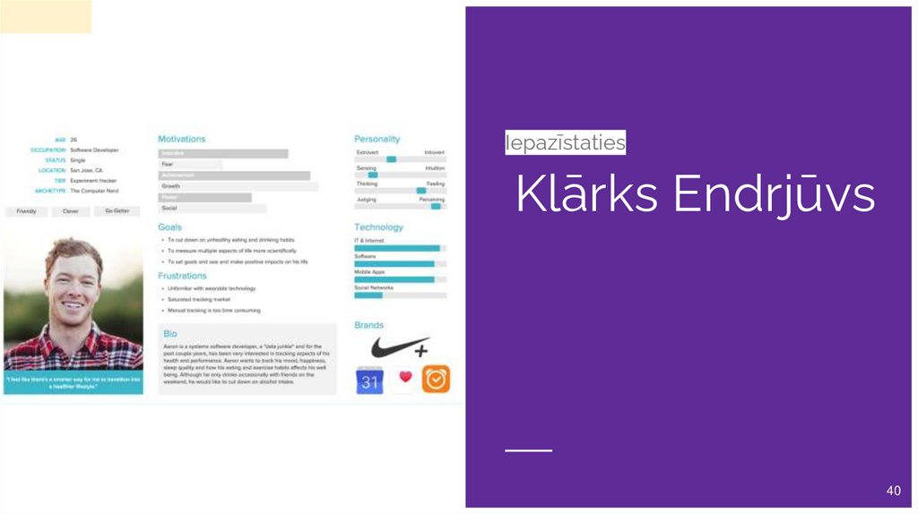 Lietotāja persona ir izdomāts, taču realitātei pietuvināts lietotāja apraksts.