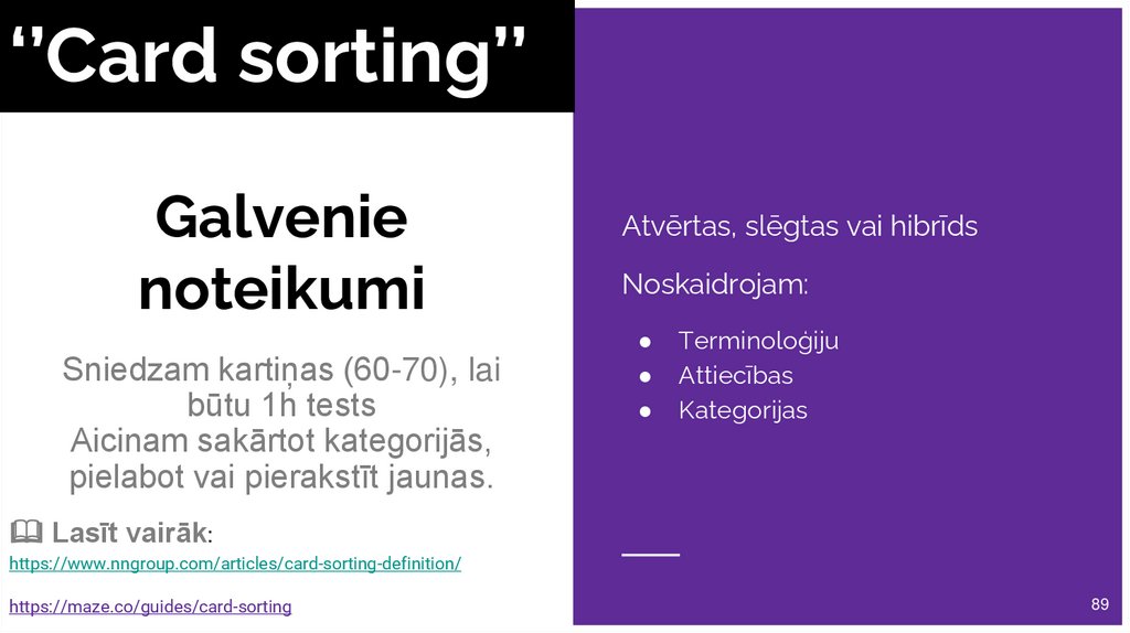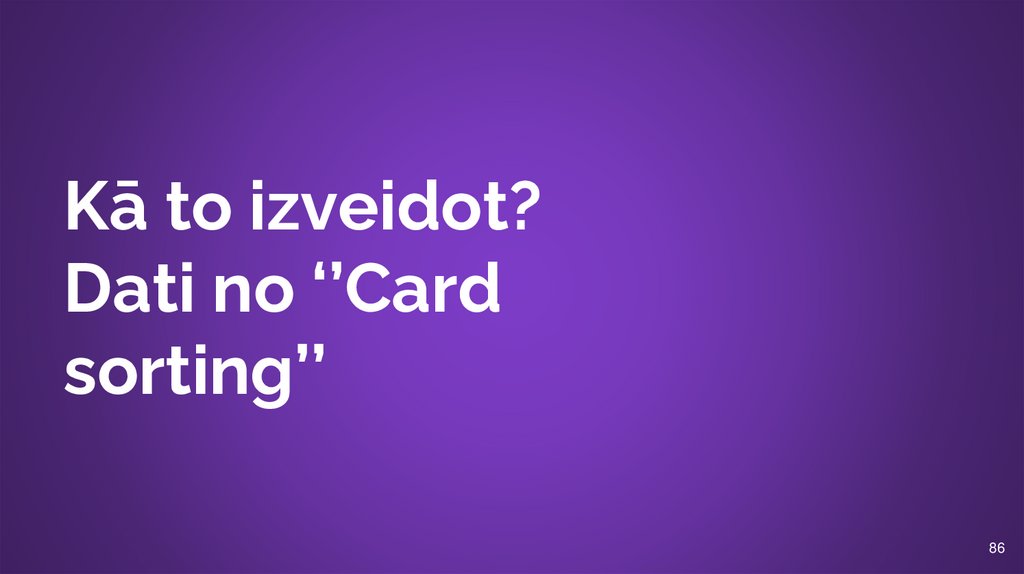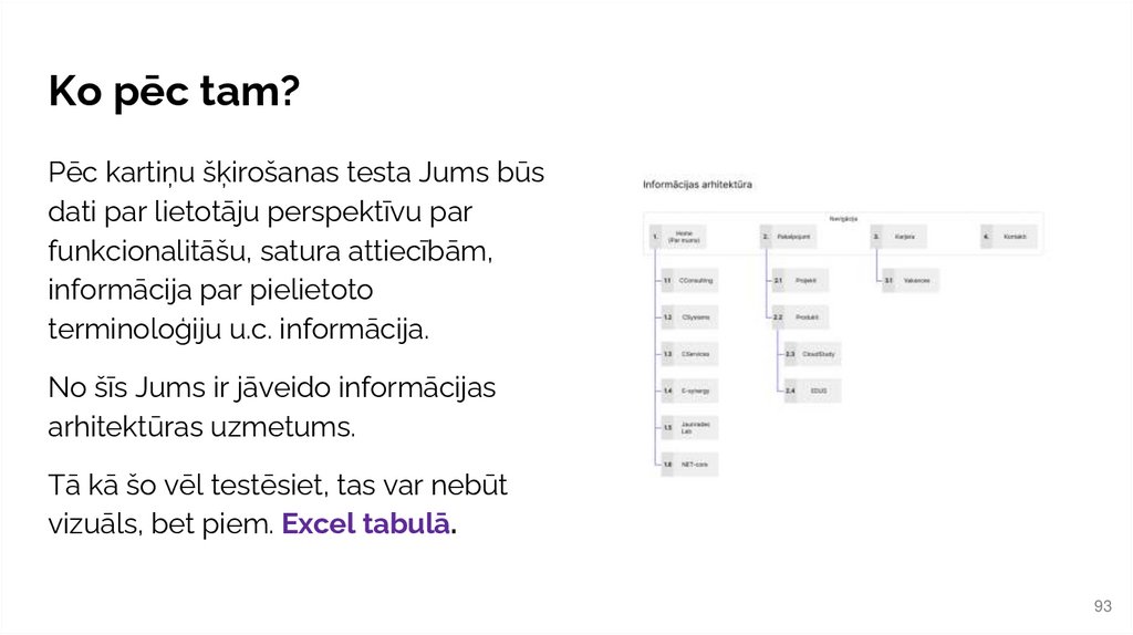 Struktūrkoks jāizstrādā veicot kartīšu šķirošanas testu ar lietotājiem.