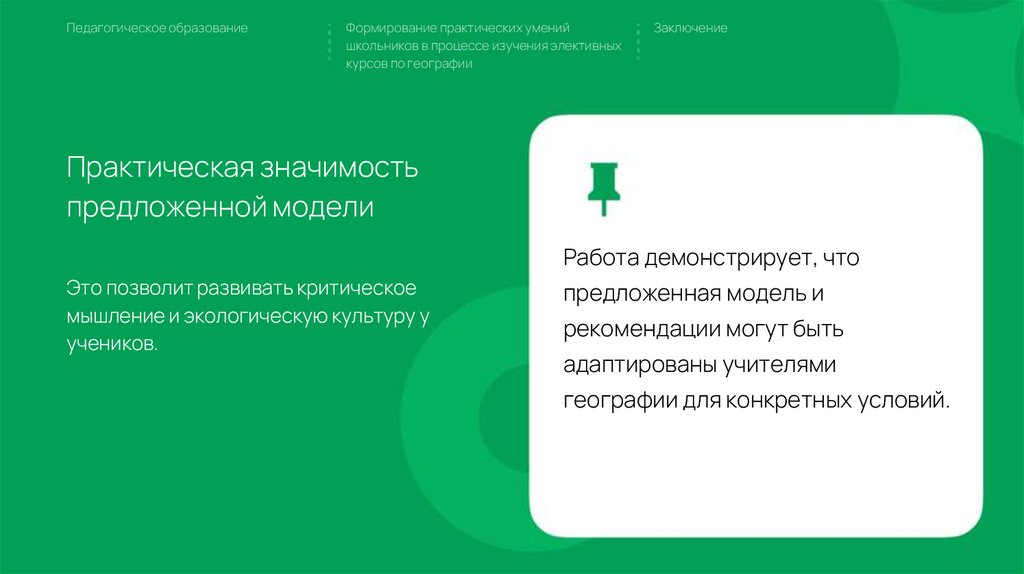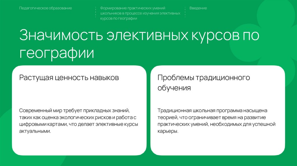 Формирование практических умений школьников в процессе изучения элективных курсов по географии