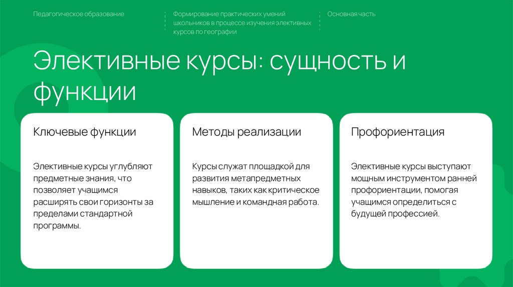 Элективные курсы: сущность и