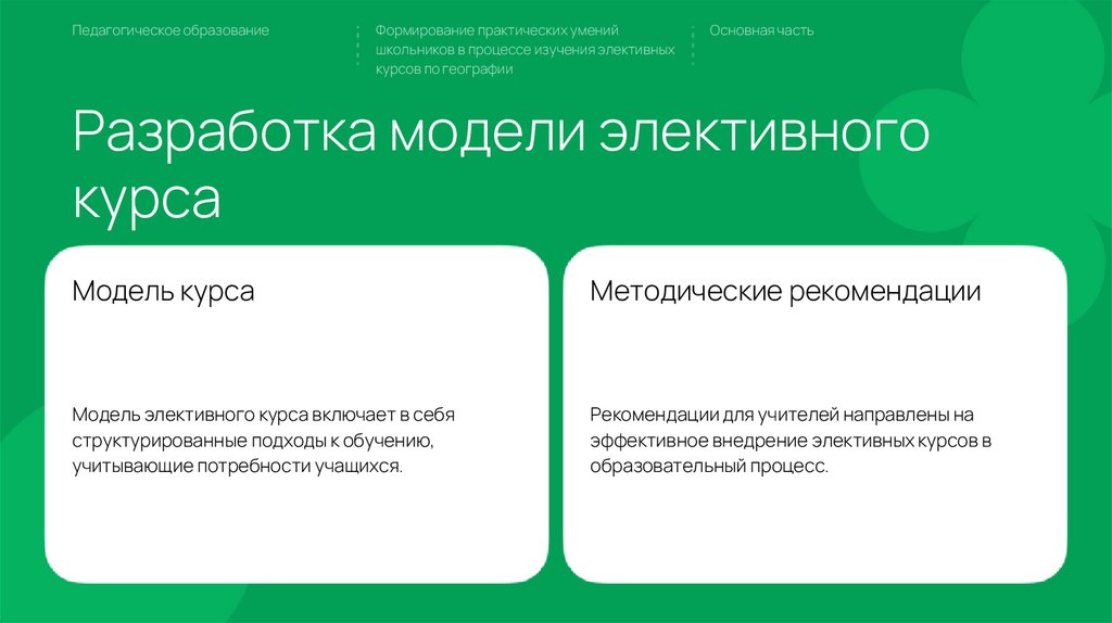 Модель элективного курса включает в себя