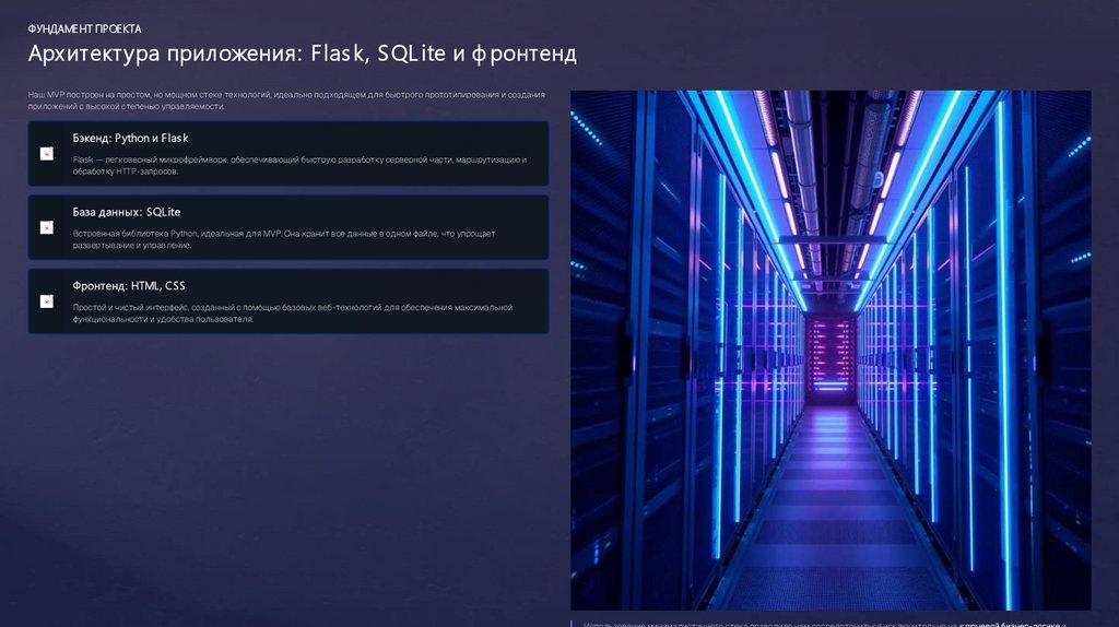 ФУНДАМЕНТ ПРОЕКТААрх итект ура приложения: Flas k, S QL ite и ф ронтенд
