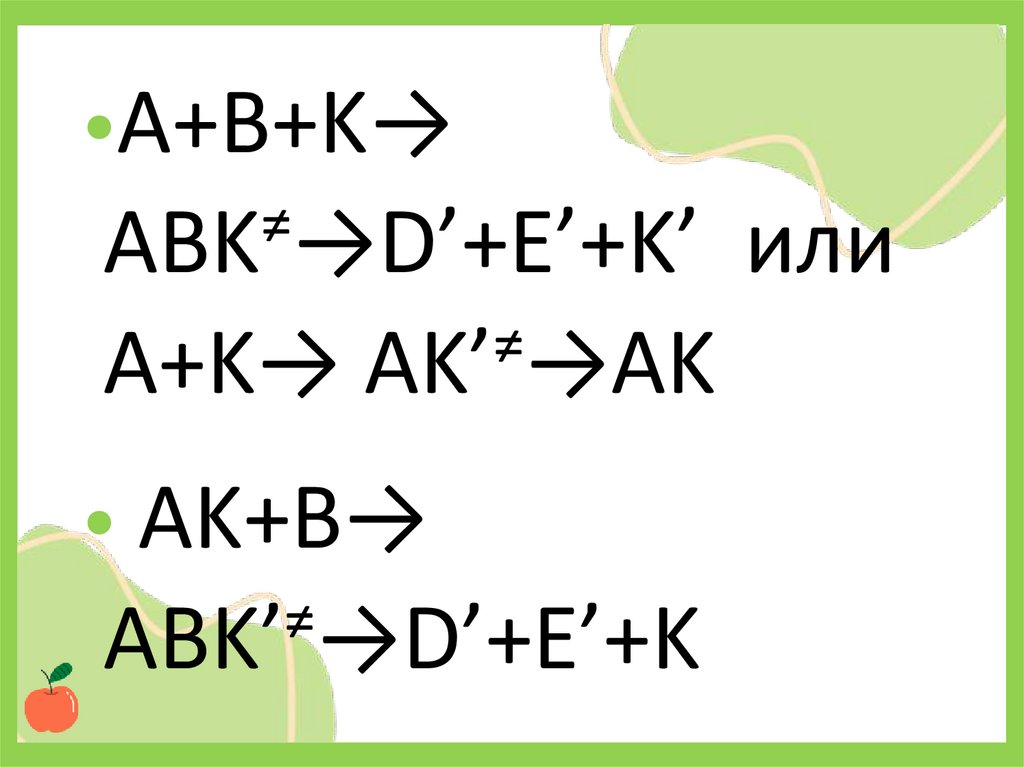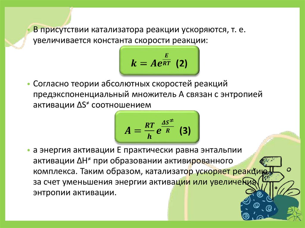 • В присутствии катализатора реакции ускоряются, т. е.увеличивается константа скорости реакции: