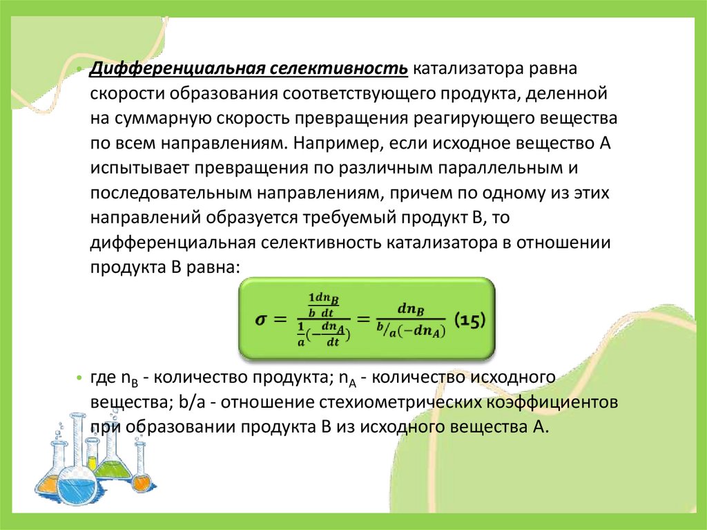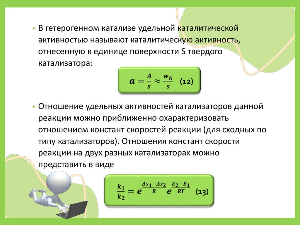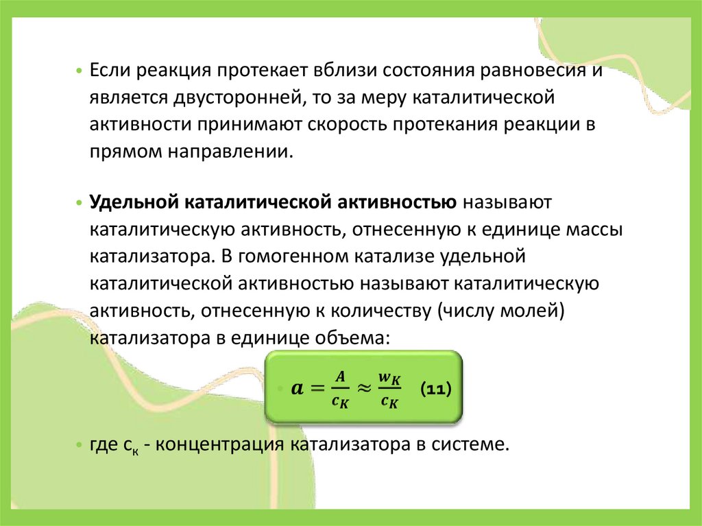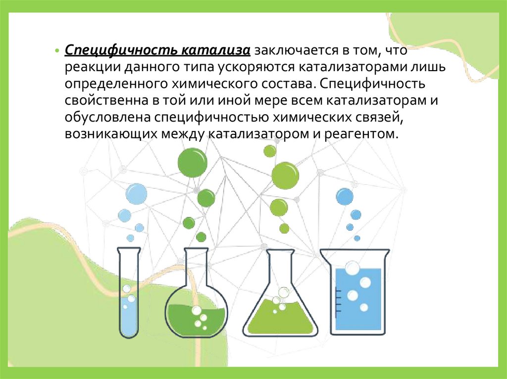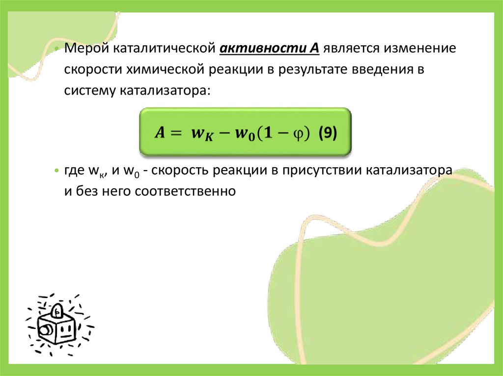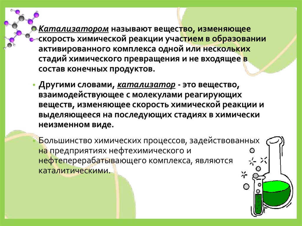 • Катализатором называют вещество, изменяющеескорость химической реакции участием в образовании