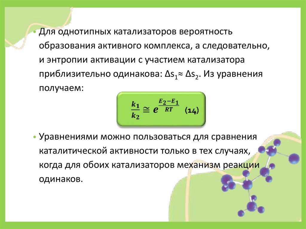 для рассматриваемой группы катализаторов или реакций одинаков.