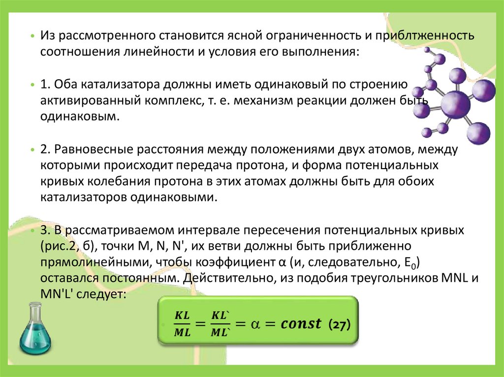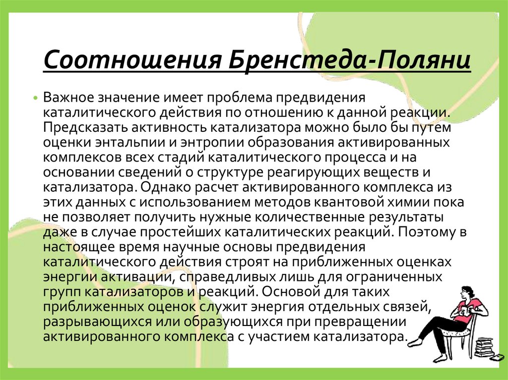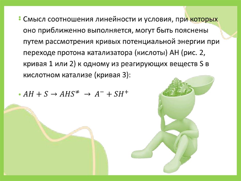 • Соотношение линейности Бренстеда - Поляни справедливо, если