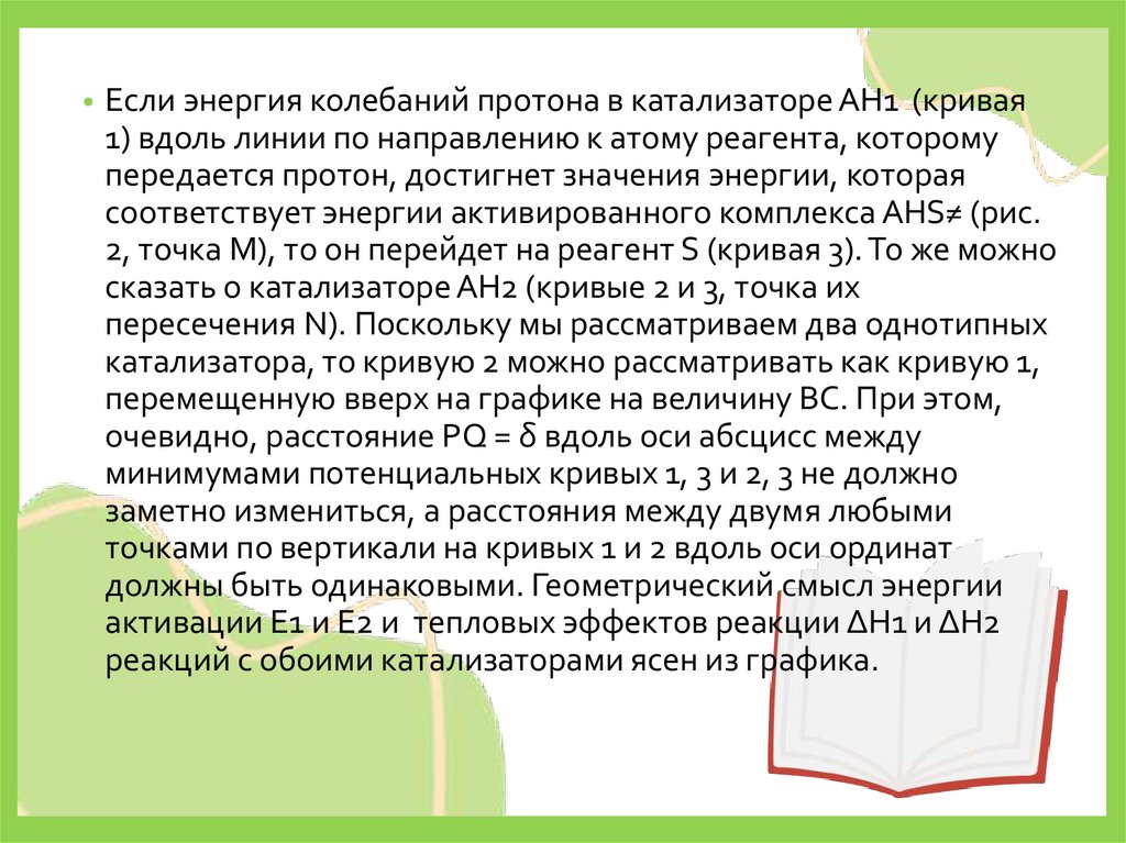 • Если энергия колебаний протона в катализаторе АН1 (кривая1) вдоль линии по направлению к атому реагента, которому