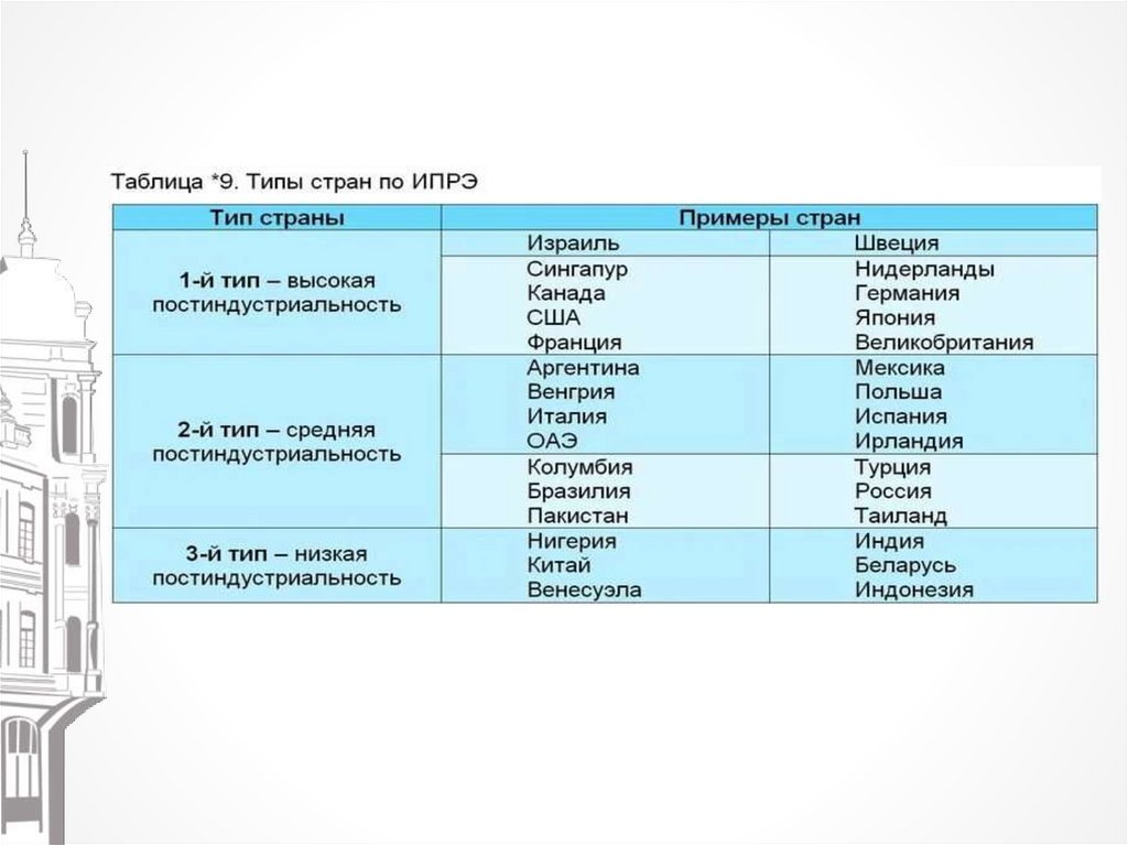 особенности постиндустриальных стран.