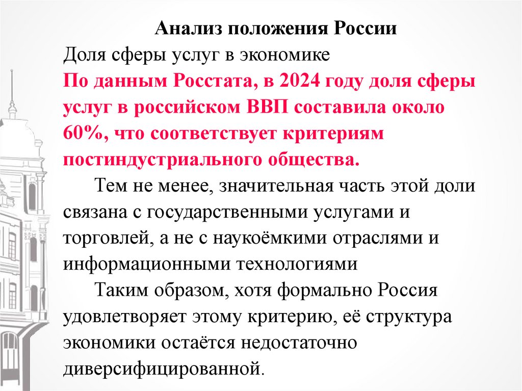 Анализ положения РоссииДоля сферы услуг в экономике