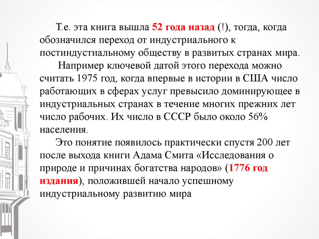 Т.е. эта книга вышла 52 года назад (!), тогда, когдаобозначился переход от индустриального к