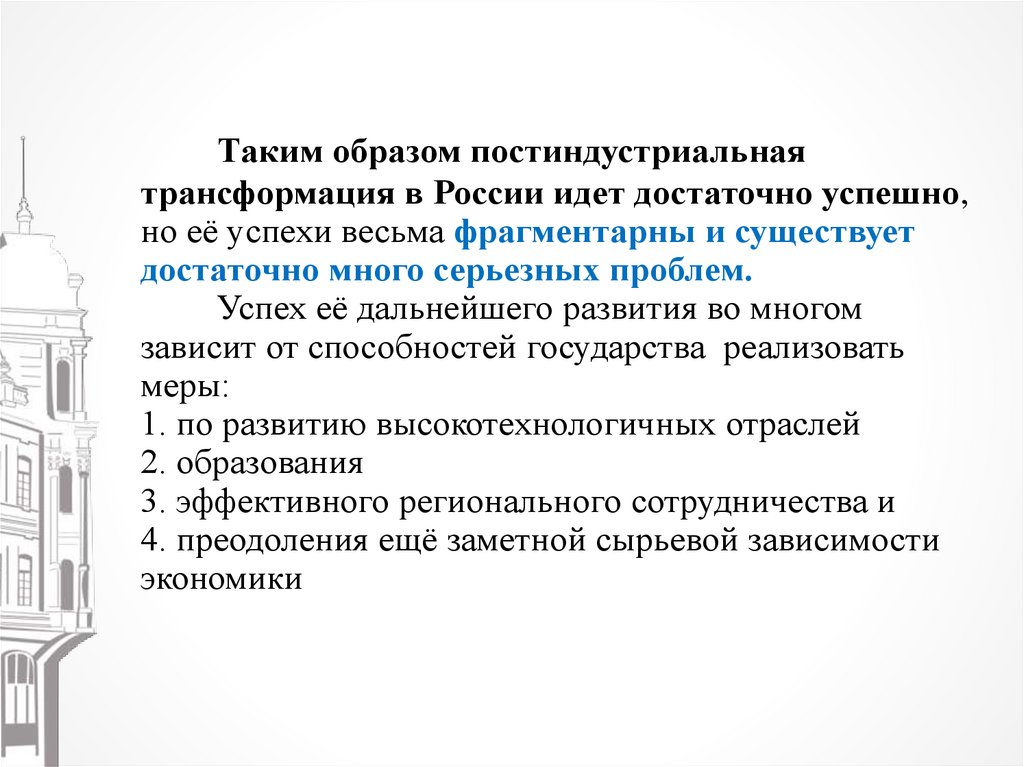 Таким образом постиндустриальнаятрансформация в России идет достаточно успешно,