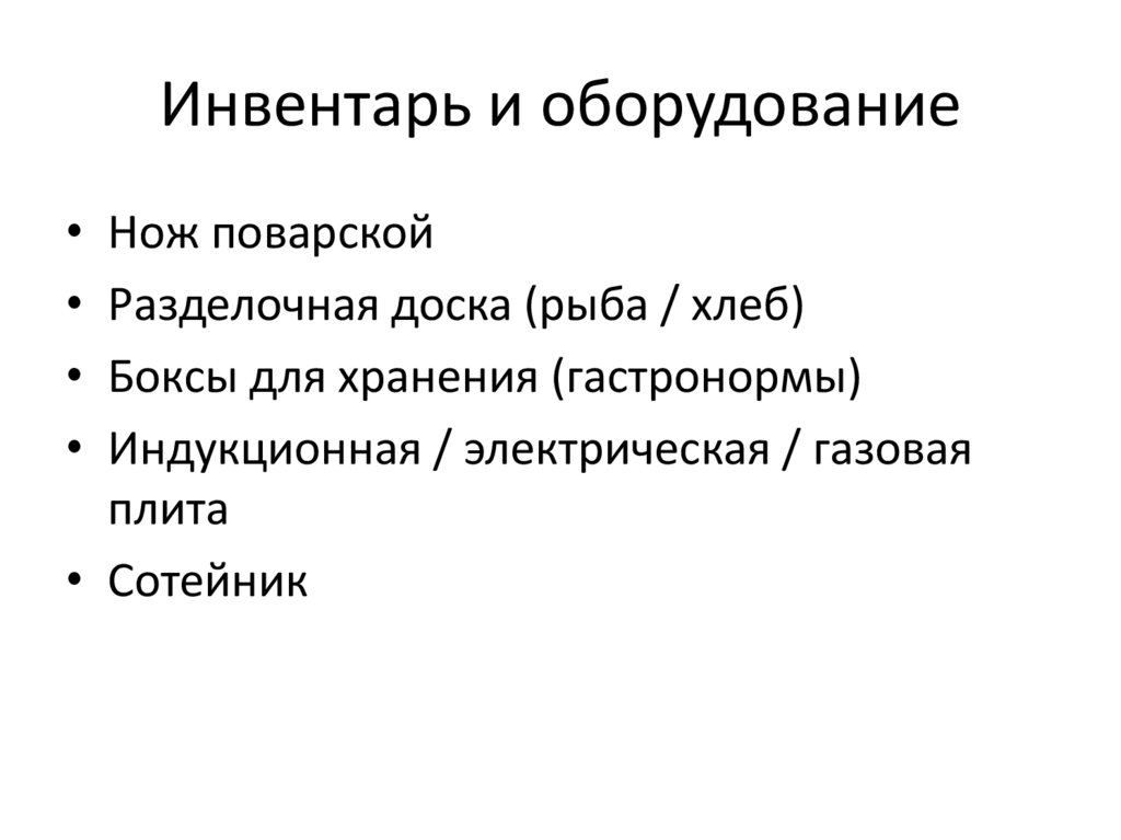 Инвентарь и оборудование• Нож поварской