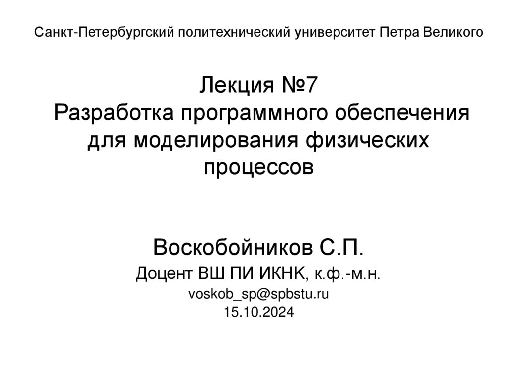 1. Лекция №7 Разработка программного обеспечения для моделирования физических процессов