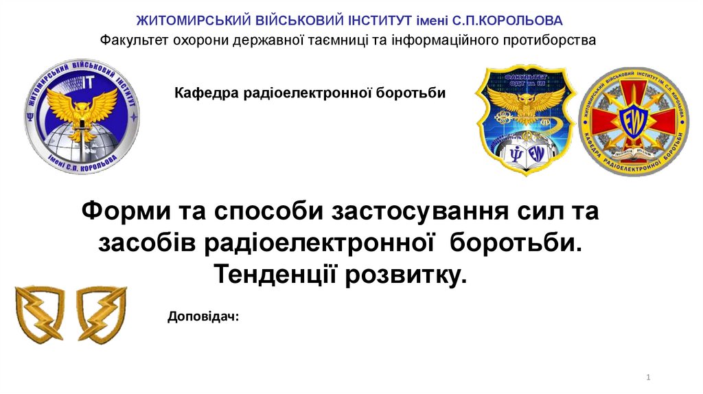 ЖИТОМИРСЬКИЙ ВІЙСЬКОВИЙ ІНСТИТУТ імені С.П.КОРОЛЬОВАФакультет охорони державної таємниці та інформаційного протиборства