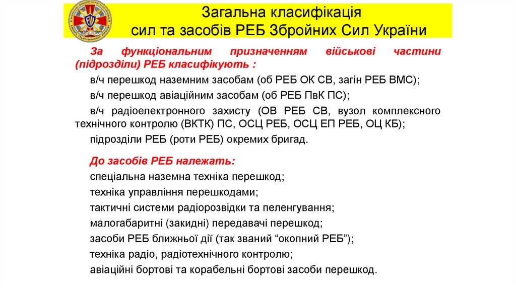 Загальна класифікаціясил та засобів РЕБ Збройних Сил України