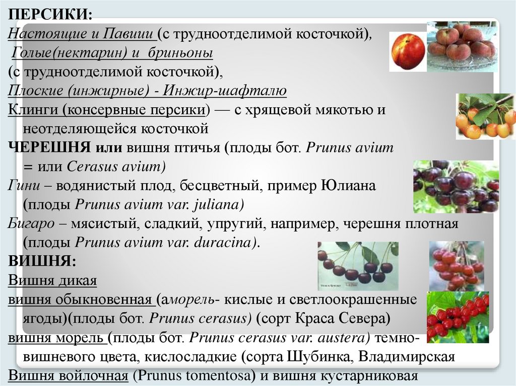косточковый плод, как вишни и персики. По климатической зоне произрастания их можно