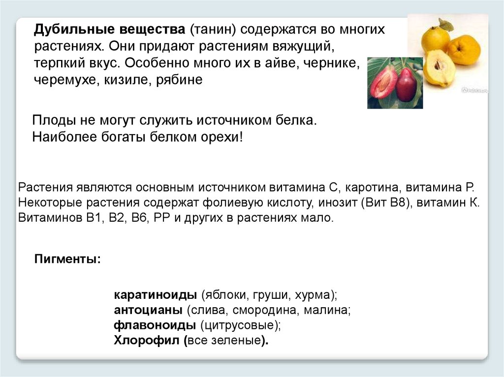 Дубильные вещества (танин) содержатся во многихрастениях. Они придают растениям вяжущий,