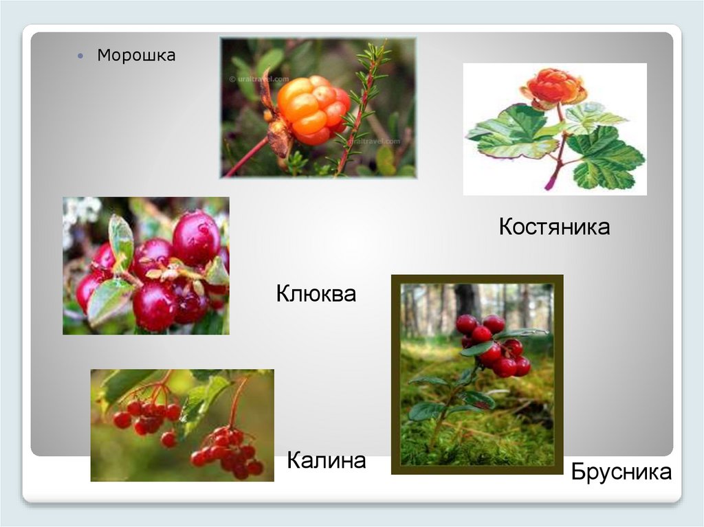 брусника, калина.