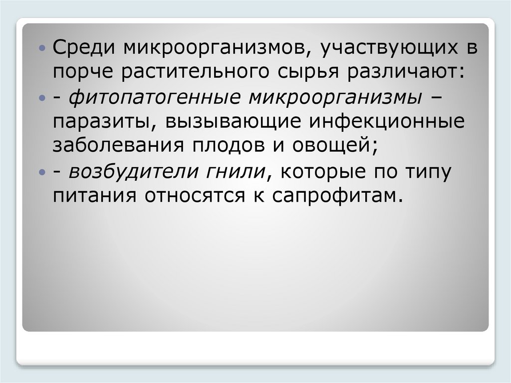 - возбудители гнили, которые по типу