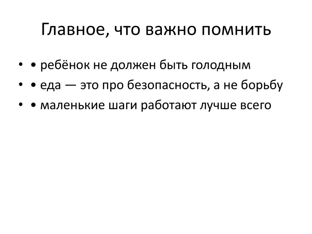 Главное, что важно помнить• • ребёнок не должен быть голодным