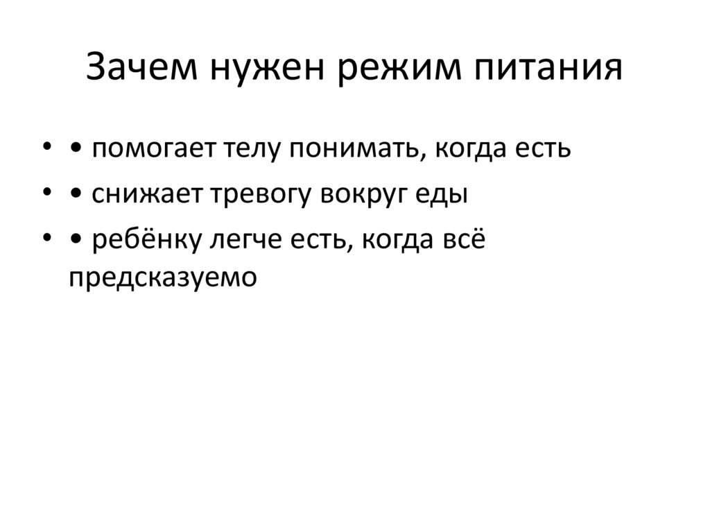 Зачем нужен режим питания• • помогает телу понимать, когда есть