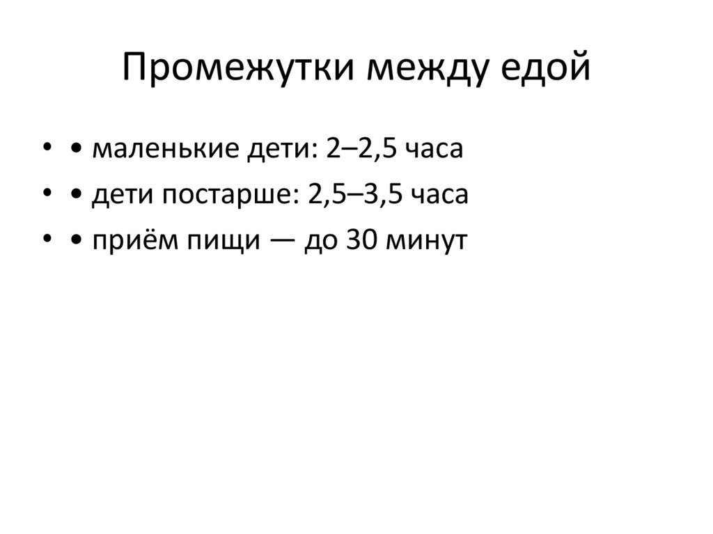 Промежутки между едой• • маленькие дети: 2–2,5 часа