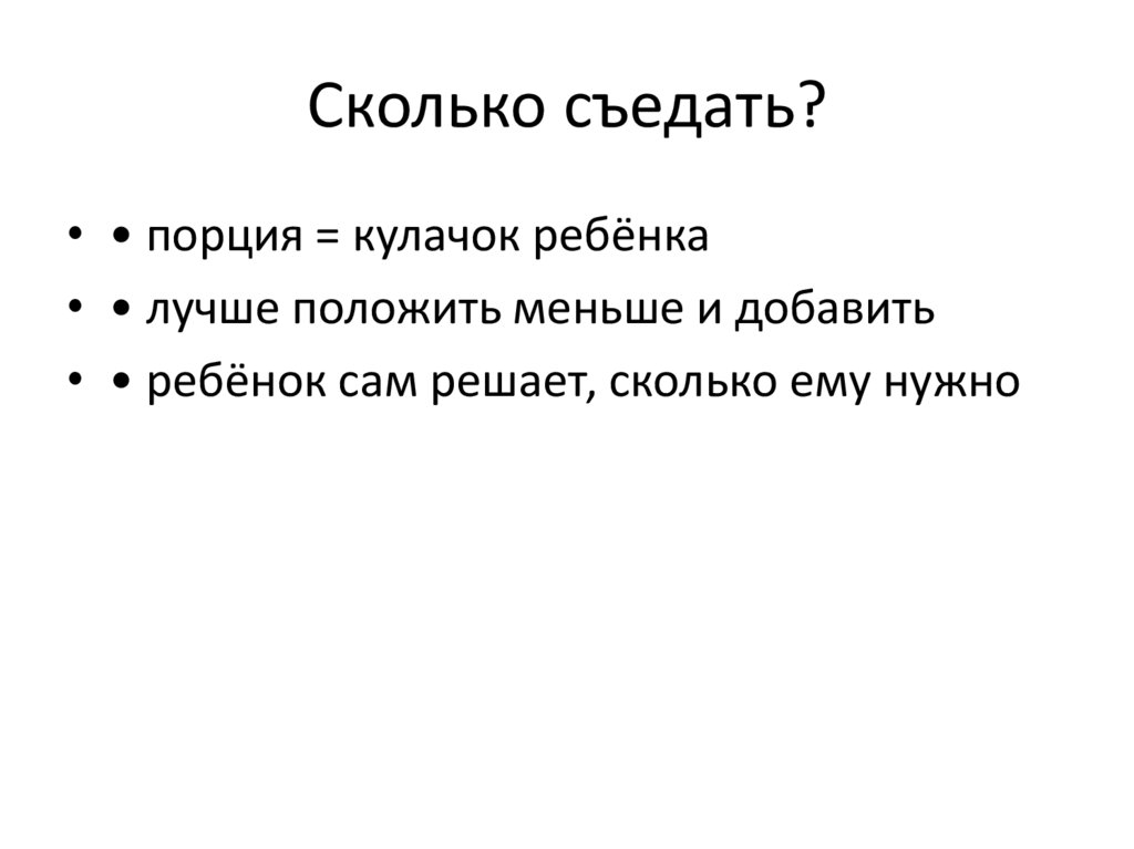 • • ребёнок сам решает, сколько ему нужно