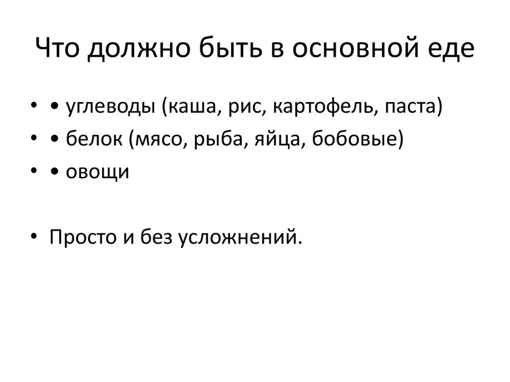 Что должно быть в основной еде• • углеводы (каша, рис, картофель, паста)