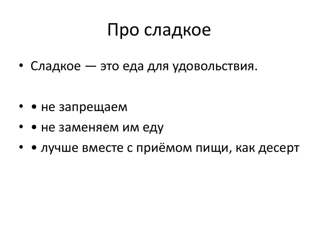 Про сладкое• Сладкое — это еда для удовольствия.