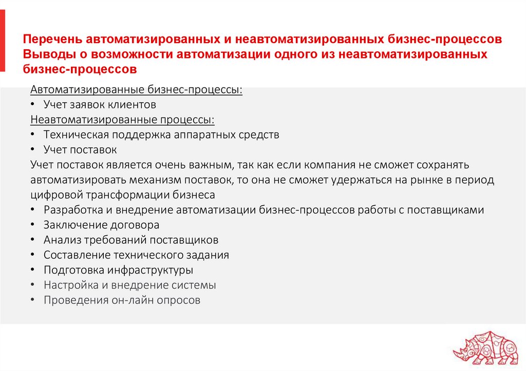 Перечень автоматизированных и неавтоматизированных бизнес-процессовВыводы о возможности автоматизации одного из неавтоматизированных
