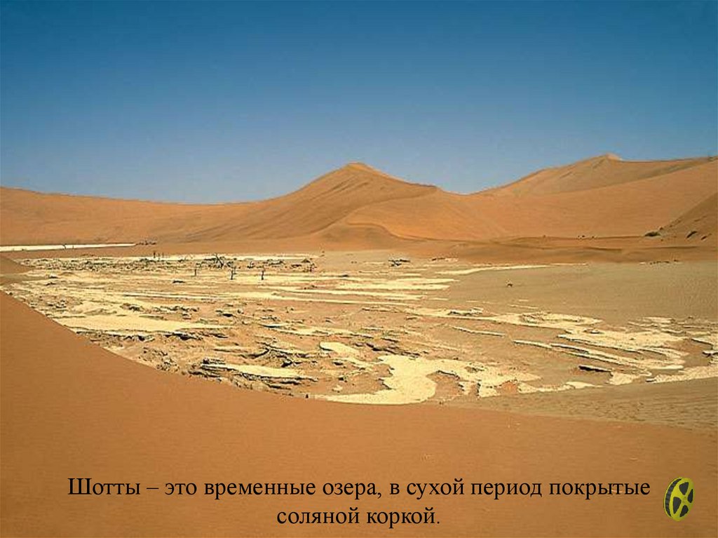 Шотты – это временные озера, в сухой период покрытыесоляной коркой.